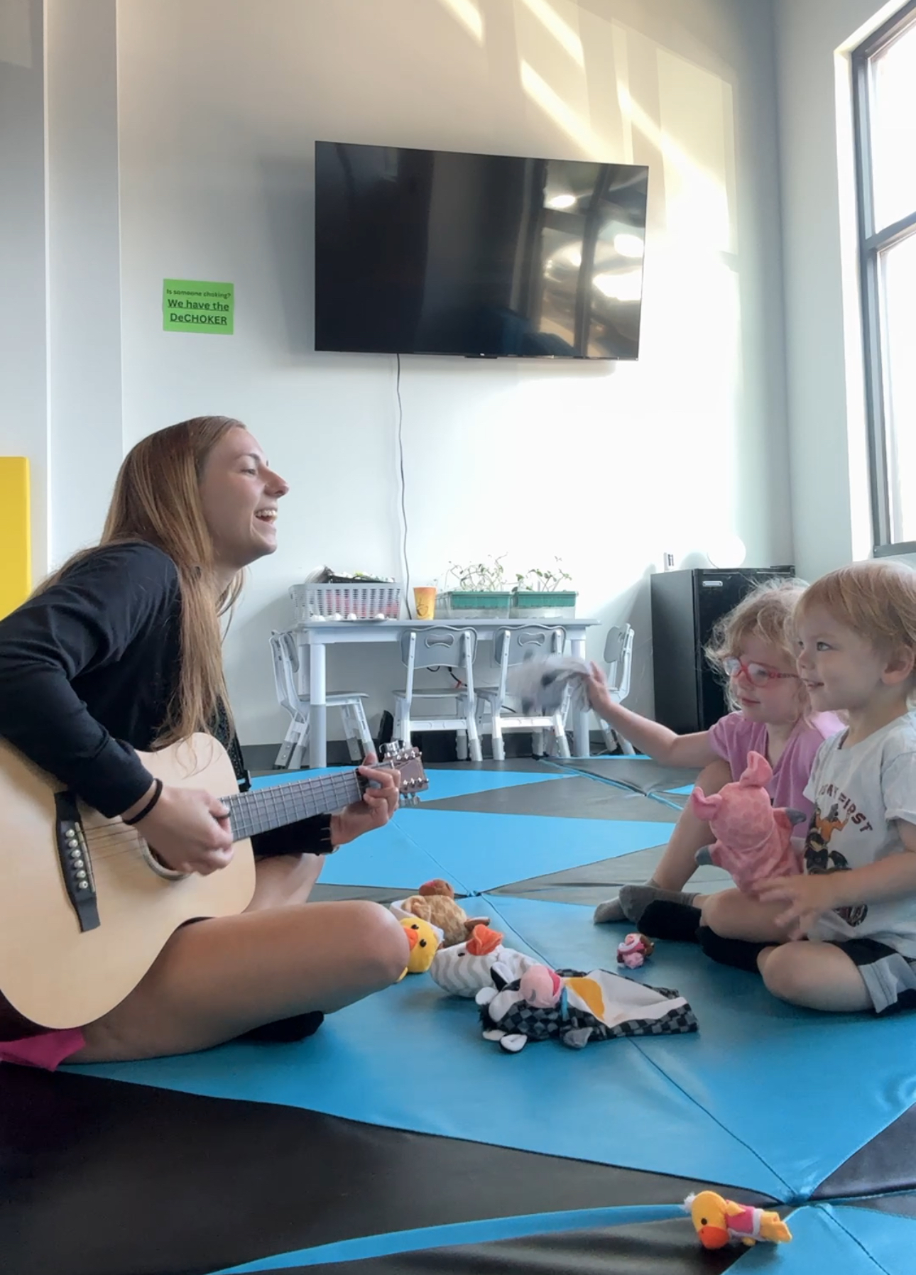 30-minute music and movement class full of singing, dancing, and instrument play led by board-certified music therapist, Miss. Anna. We explore classic nursery rhymes, original songs by Miss. Anna, silly tunes, and so much more - all while supporting early learning and development. Music can help to enhance communication, language, and motor skills. Come jump, jam, and grow with us!